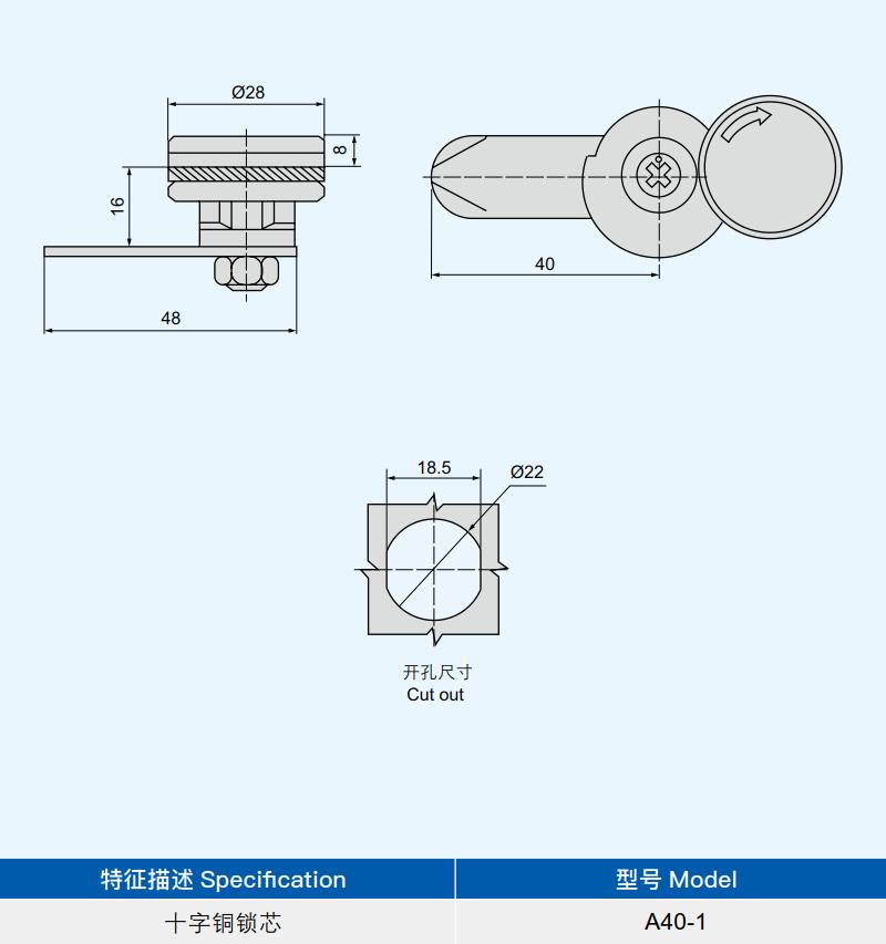 特征说明材质:锌合金基座,防尘盖、十字铜锁芯 表面处理:镀铬、砂面