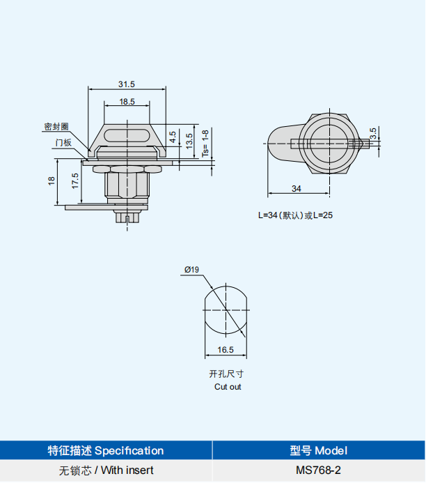 特征说明材质:锌合金基座,碳钢钢栓 表面处理:镀亮铬或喷塑 ( 黑淡光 ) 基座,镀白锌钢栓 结构说明:90°旋转实现开启或锁闭