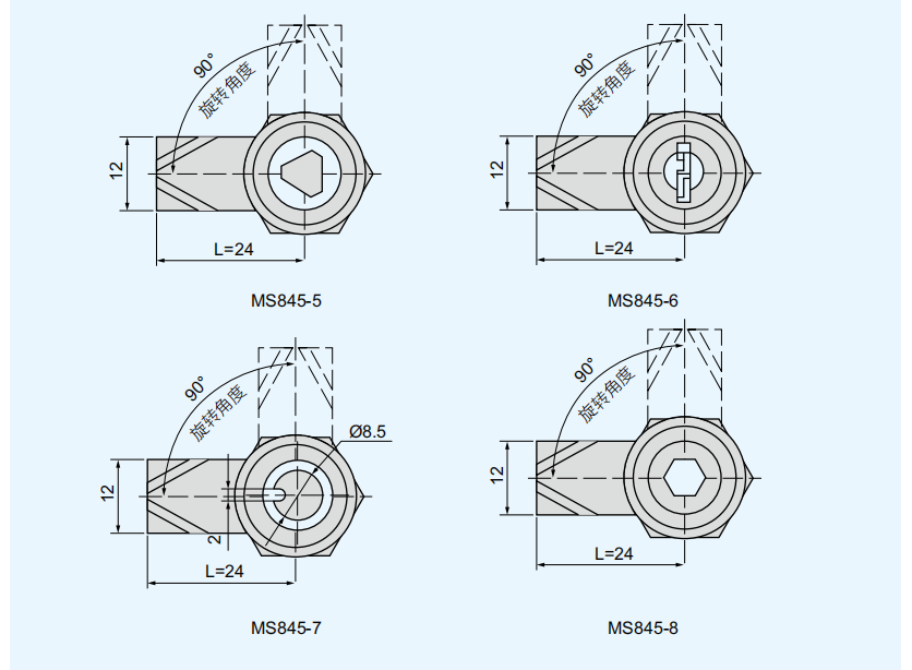 结构说明:90°旋转实现开启或锁闭