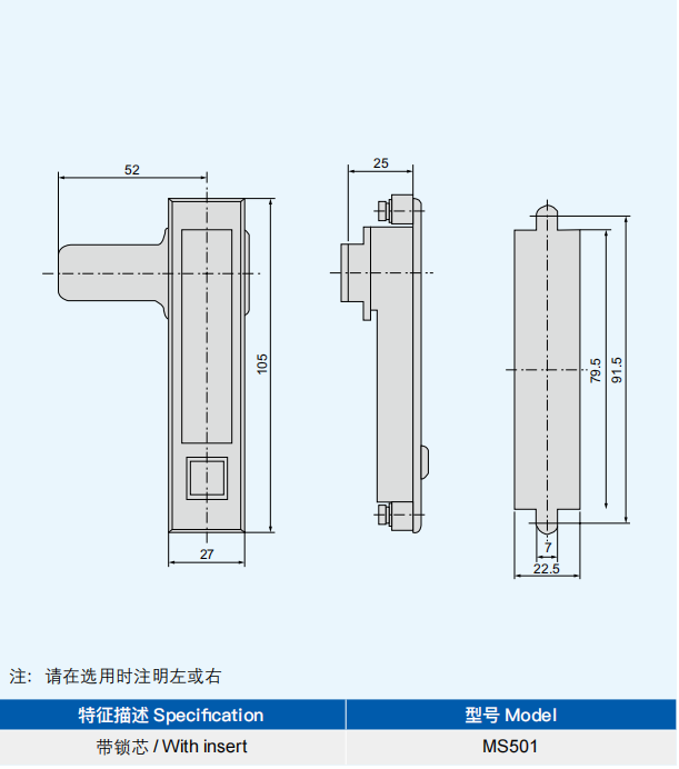 特征说明材质:锌合金基座、锁芯、按钮,碳钢钢栓 表面处理:镀白锌钢栓 结构说明:快速开启,安装方便快捷;通过钢栓打弯适用于不同的止口高度 备注:默认 K0510 钥匙 适用门板厚度:1-4mm