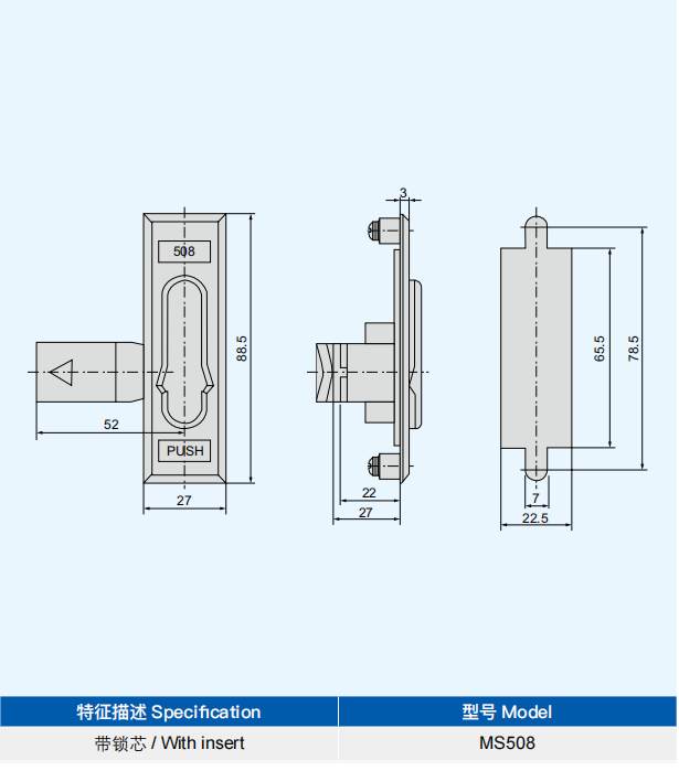 特征说明材质:锌合金基座、锁芯,ABS 塑料盖,碳钢钢栓 表面处理:镀亮光铬基座,镀白锌钢栓 结构说明:90°旋转实现开启或锁闭 备注:默认配 K7010 钥匙 适用门板厚度:1-4mm