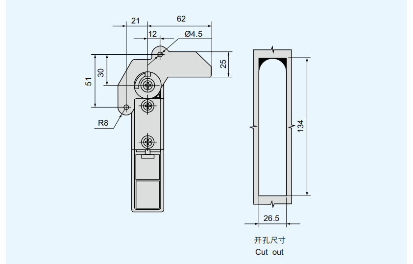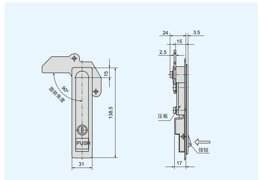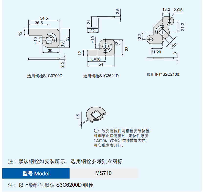 特征说明材质:锌合金基座、手柄、锁芯,碳钢压板、钢栓 表面处理:纳米亚光基座、手柄,镀白锌压板、钢栓 结构说明:快速开启,安装方便快捷;更换钢栓可达到单点与三点锁住功能 备注:默认钥匙 K010
