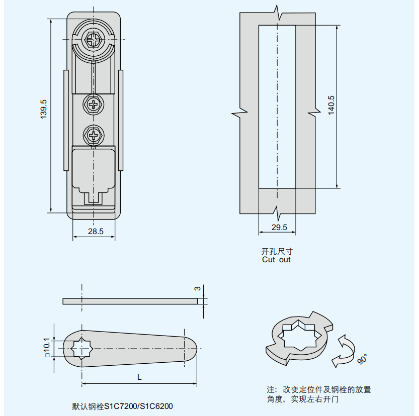 结构说明:快速开启,安装方便快捷,更换钢栓可达到单点与三点锁住功能