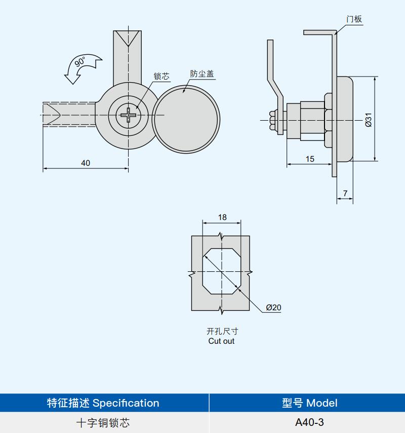 材质:锌合金基座,防尘盖、十字铜锁芯
