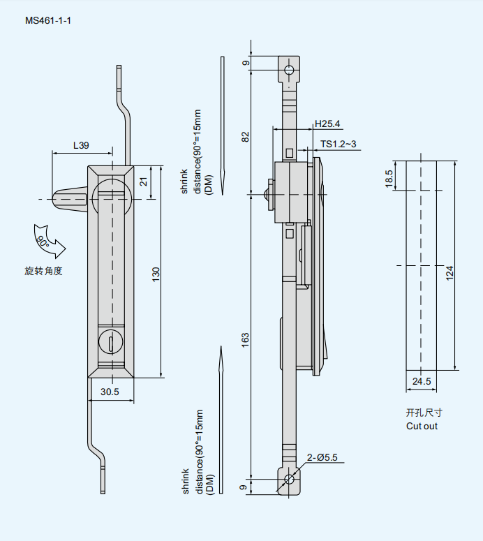 锌合金锁体,镀锌锁片、压板、喷砂镀亮铬齿条
