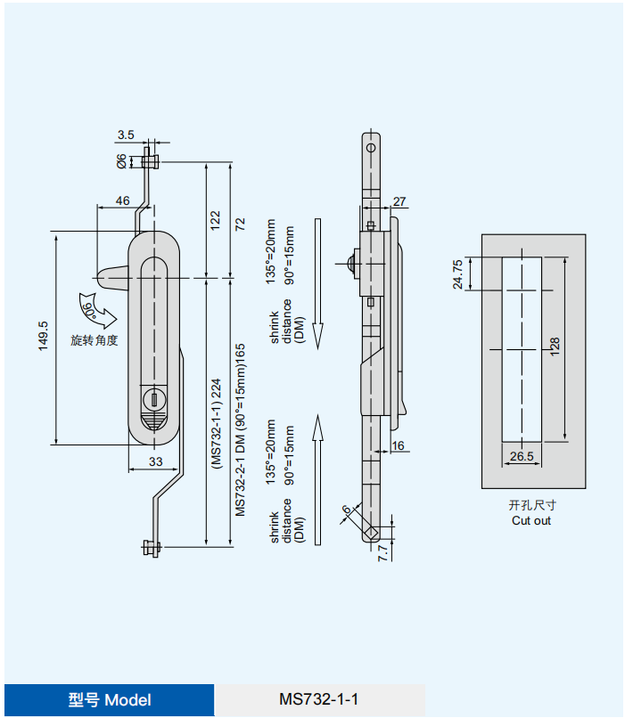 结构说明:快速开启,安装快捷方便手柄 90°旋转带动 传动壳组件实现开启或锁闭