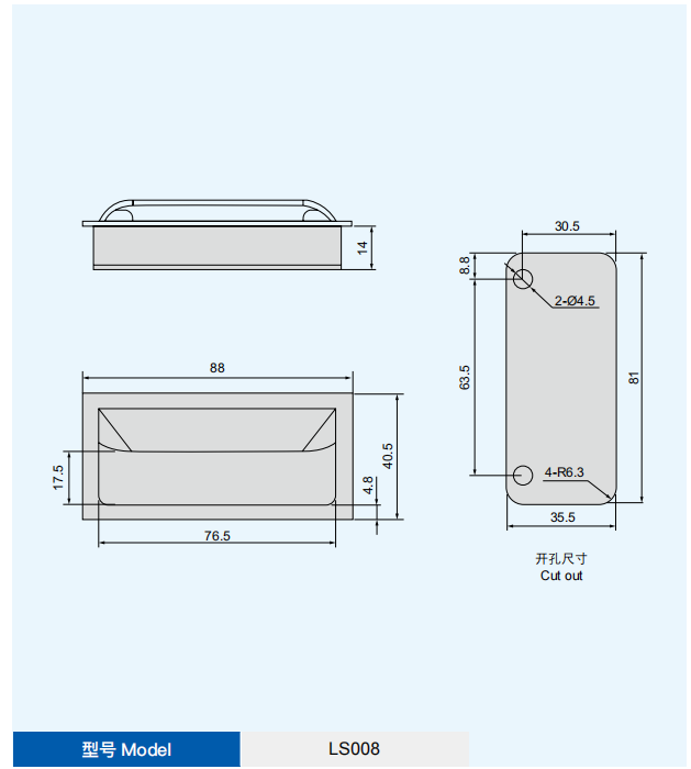 功能及用途:适用于各种中、高档推拉门,工具箱、配电柜等拉手