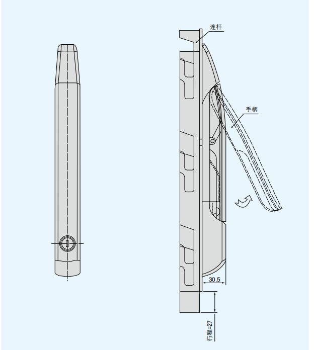 特征说明材质:锌合金基座、手柄 表面处理:喷塑(黄灰)基座、手柄 结构说明:手柄快速开启,安装方便快捷 备注:默认 K082钥匙