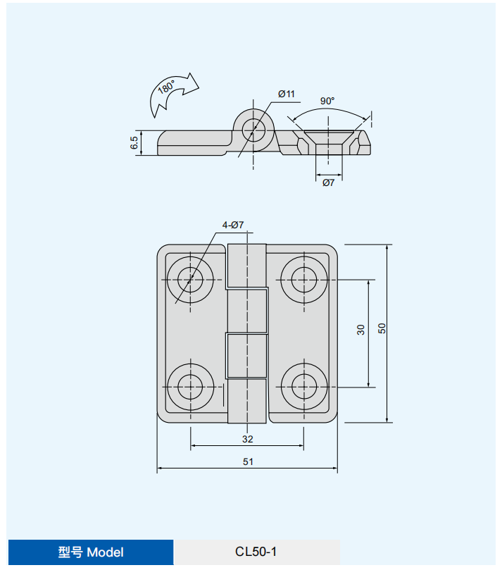 特征说明材质:锌合金铰链,碳钢销子 表面处理:亚光、镀亮铬或喷塑 ( 黑淡光 ) 铰链、 镀镍销子 结构说明:可开启角度 180°