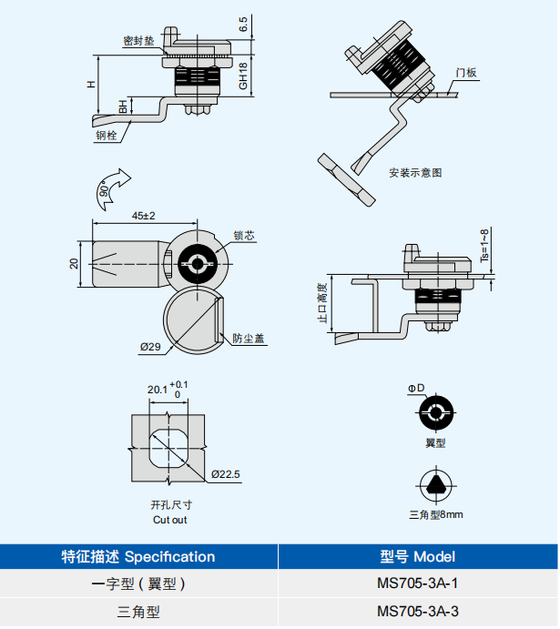 喷砂、镀铬锌合金基座、镀铬锁芯, 镀锌钢钢栓。
