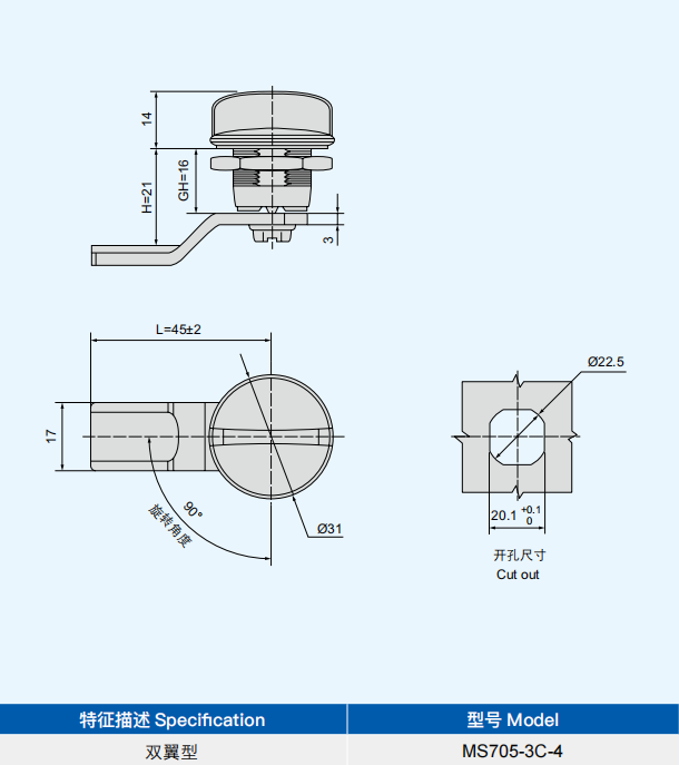 圆柱锁MS705-3C-4